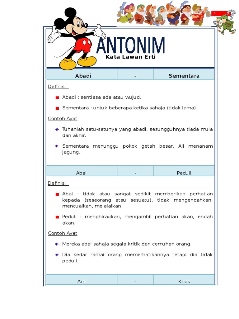 Perkataan Antonim - Saya Nak Belajar Bahasa Melayu Dan Sejarah